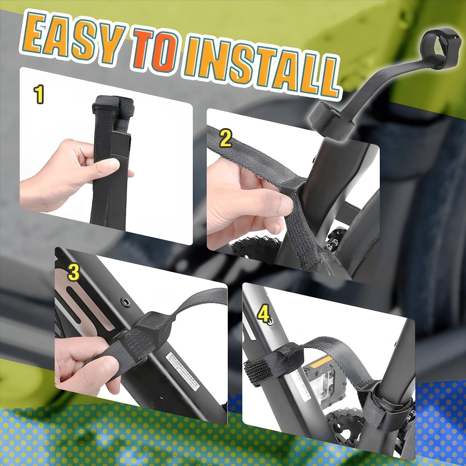 Dieser leistungsstarke Handgurt verwandelt Ihr Fahrrad in ein leicht tragbares Fahrzeug, und das in wenigen einfachen Schritten. Führen Sie einfach die Schlaufen des Handgurts durch die Löcher, befestigen Sie den Gurt am Rahmen des Fahrrads und schließen Sie die zweite Schlaufe von der anderen Seite des Rahmens an – und schon sind Sie fertig. Sie können den Gurt für die nächste Verwendung am Fahrrad lassen oder ihn jederzeit abnehmen und an ein anderes Fahrrad anbringen. Keine komplizierte Installation oder Werkzeuge erforderlich, die Ihr Fahrrad beschädigen könnten.