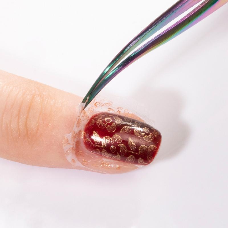 - Trage eine Schicht rund um die Nagelplatte auf, bevor du Nagellack aufträgst, und ziehe sie danach ab.