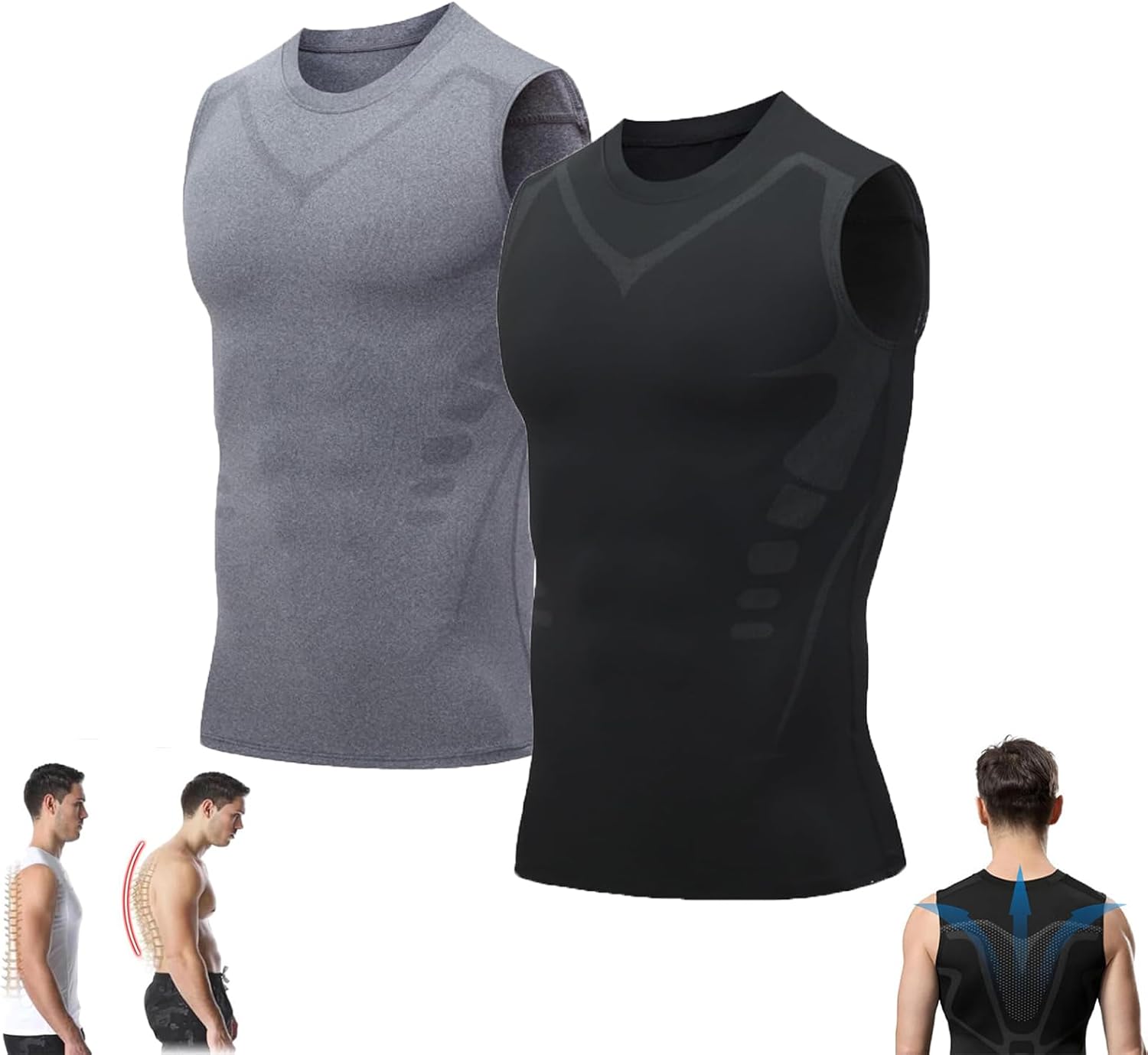 Pukmqu Gfouk Menionic Turmalin Haltungskorrektur-Weste, Ionisches Formgebungs-Ärmelloses Shirt, Haltungskorrektur für Männer, Rückenstützweste