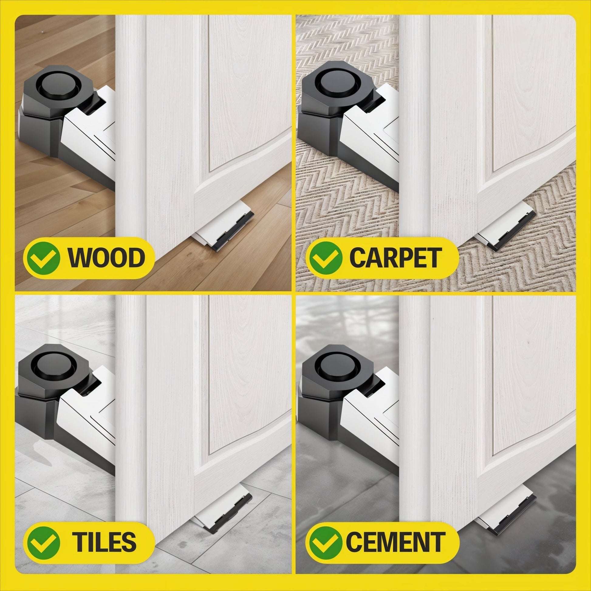 Dieses doppelte Türschutzgerät verfügt über eine bemerkenswerte rutschfeste Gummibasis, die eine hervorragende Haftung auf fast allen Bodenarten bietet. Dadurch bleibt es auch auf nassen oder glatten Böden, Hartholzböden, Keramikfliesen, Laminatböden, Vinyl, Beton, Porzellanfliesen, Teppichen und mehr sicher an Ort und Stelle. Eine großartige Ergänzung, um leicht schwingende Türen in unbewegliche, nicht betretbare Eingänge zu verwandeln. Geeignet für Zuhause, Hotels, Studentenwohnheime, Schlafzimmer, Apartments, Airbnb oder Zimmervermietungen – besonders auf Reisen, im Urlaub, auf Geschäftsreisen und mehr.