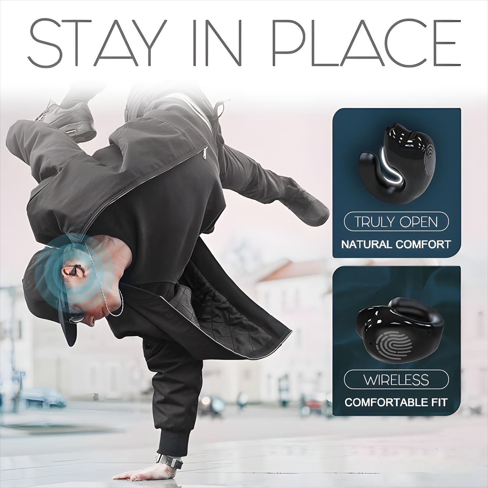 Das einzigartige flügelartige Design hält die Ohrhörer sicher an ihrem Platz – ganz ohne Ohrhaken – egal wie viel du deinen Kopf schüttelst oder springst.